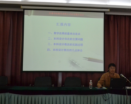 首先,由车辆工程教研室主任杨瑞副教授阐述了本次教学改革的出发点、培养目标以及改革时间。她指出了本科毕业设计中存在的主要问题,针对该问题结合学生实际情况阐述了本科毕业设计教改由虚拟设计跨越到外部造型设计,即由二维到三维的转变过程的重要意义,并提出改革建议。